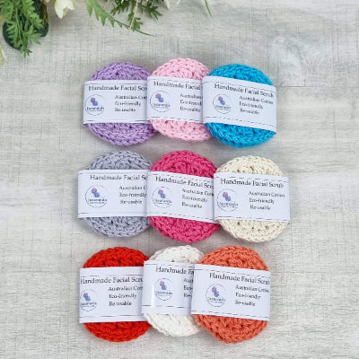 These beautiful reusable cotton facial scrubs are lovingly handmade with care and crafted from premium Australian cotton. Measuring approximately 7.5–8cm across, they’re perfectly sized, wonderfully thick, and designed to bring a little joy to your skincare routine!