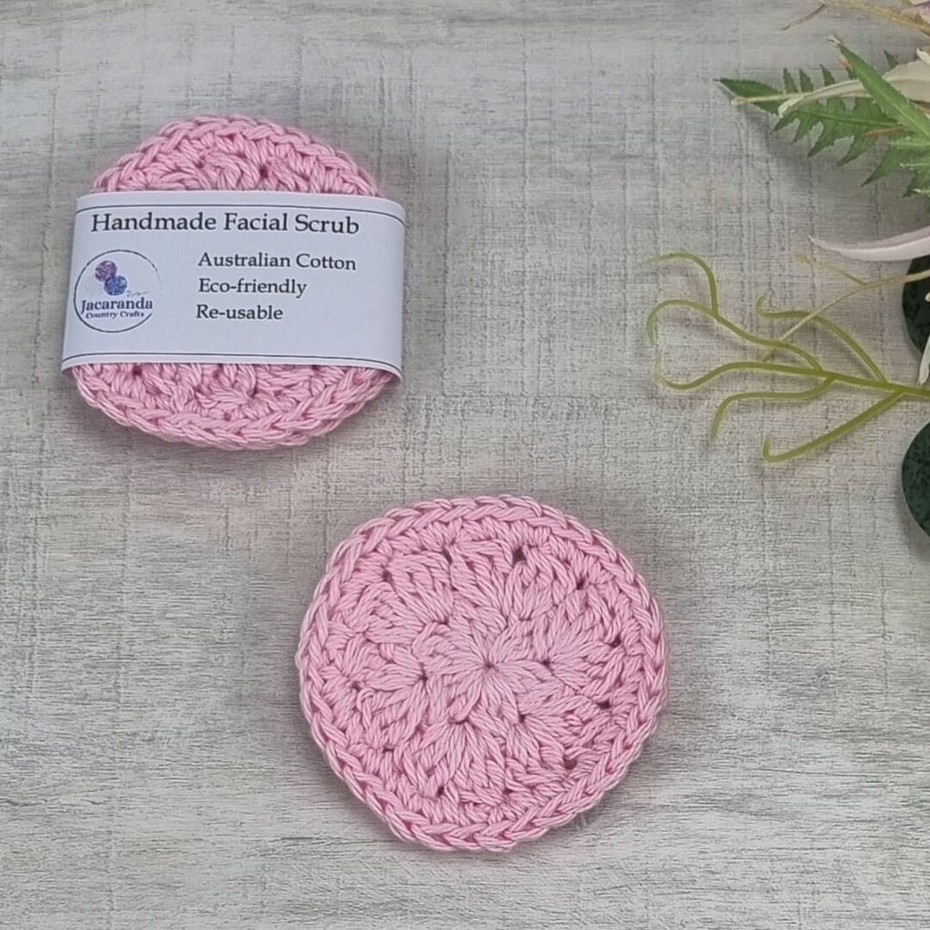 - Hand-crocheted with a unique pattern designed by me at Jacaranda Country Crafts for a soft, textured surface that gently exfoliates without being harsh
