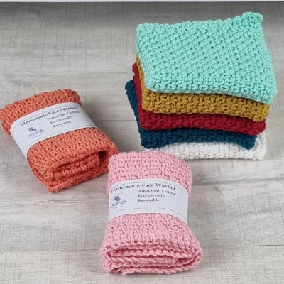 Whether you're treating yourself or gifting a loved one, these handmade Australian cotton face washers combine practicality, style, and sustainability.