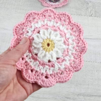 Handmade Cotton Coaster Set of Four – Daisy Pattern